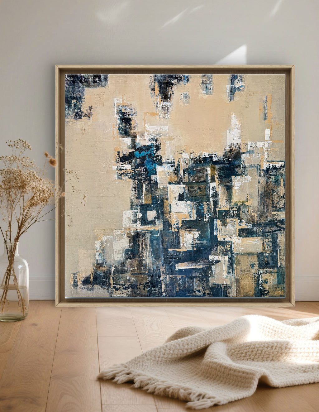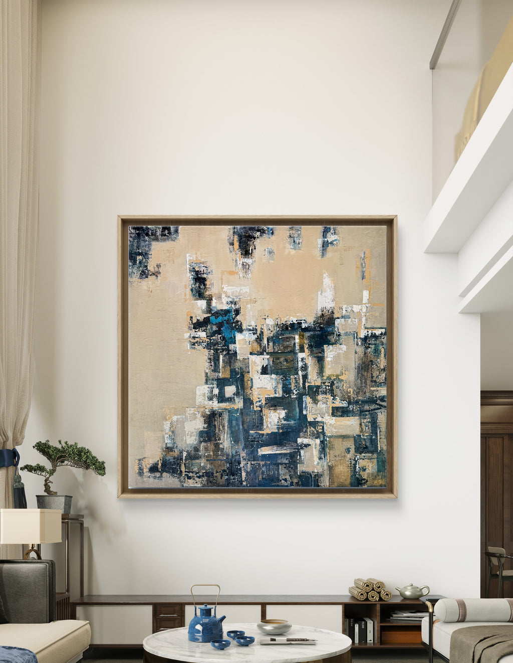 Coastal Calm takes its vibe from Goa’s old coastal structures—sun-washed walls, chipped paint, and sandy edges. The earthy blocks and blue tones feel like those buildings standing right between the sea and the shore.